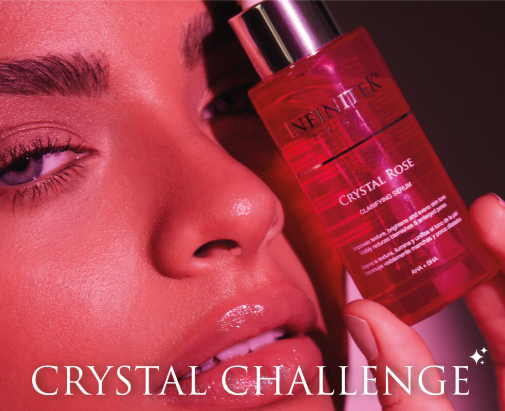 Te invitamos a unirte a nuestro Crystal Challenge, un reto de 30 días en el que pondrás a prueba la efectividad de nuestro Nuevo Sérum Clarificante Crystal Rose, descubrir la mejor versión de tu piel y ser una de las 10 ganadoras de $500.000 COP en productos Infinitek.