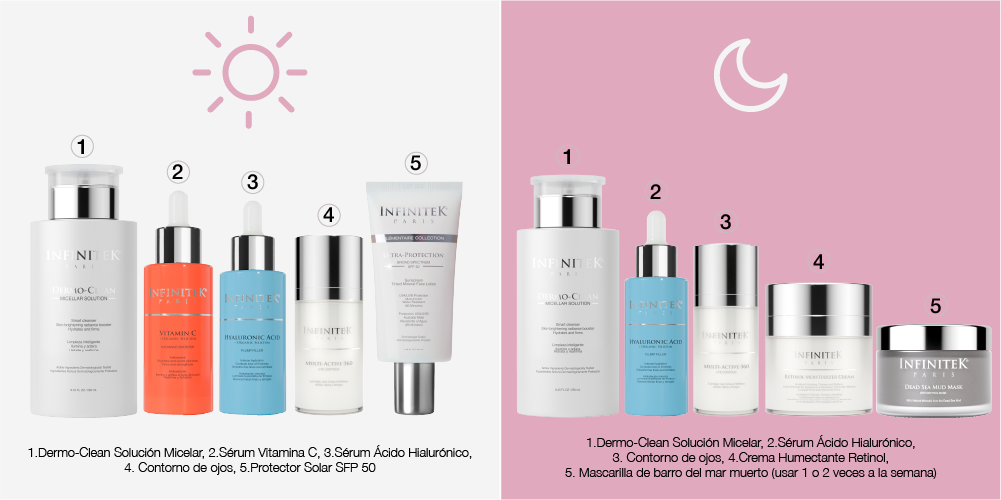 - Rutina de skincare para el día y la noche.