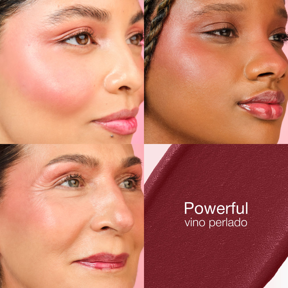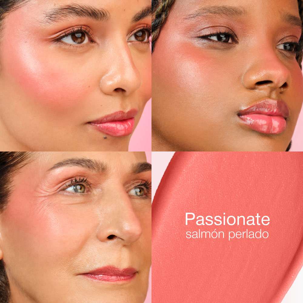 Aplicar de 1 a 3 puntos sobre la piel de las mejillas, labios y/o párpados. Difuminar con pequeños toques usando las yemas de los dedos limpios o con una brocha. Aplicar varias capas hasta conseguir la intensidad deseada.