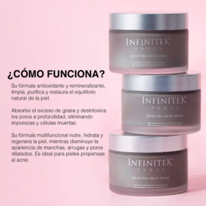 Contiene 98% de Minerales Naturales del fango del Mar Muerto. Exfolia, limpia y detoxifica la piel. Remineraliza y nutre, previniendo y disminuyendo manchas, arrugas, poros dilatados y oleosidad. Ideal para pieles con tendencia a acné o piel grasa. …Ver más