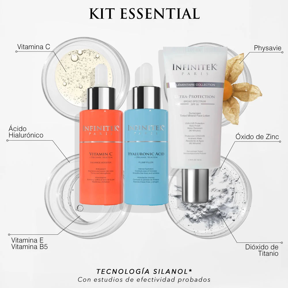 Nuestro Essential Kit contiene 3 productos indispensables para una rutina diaria de cuidado de la piel.
