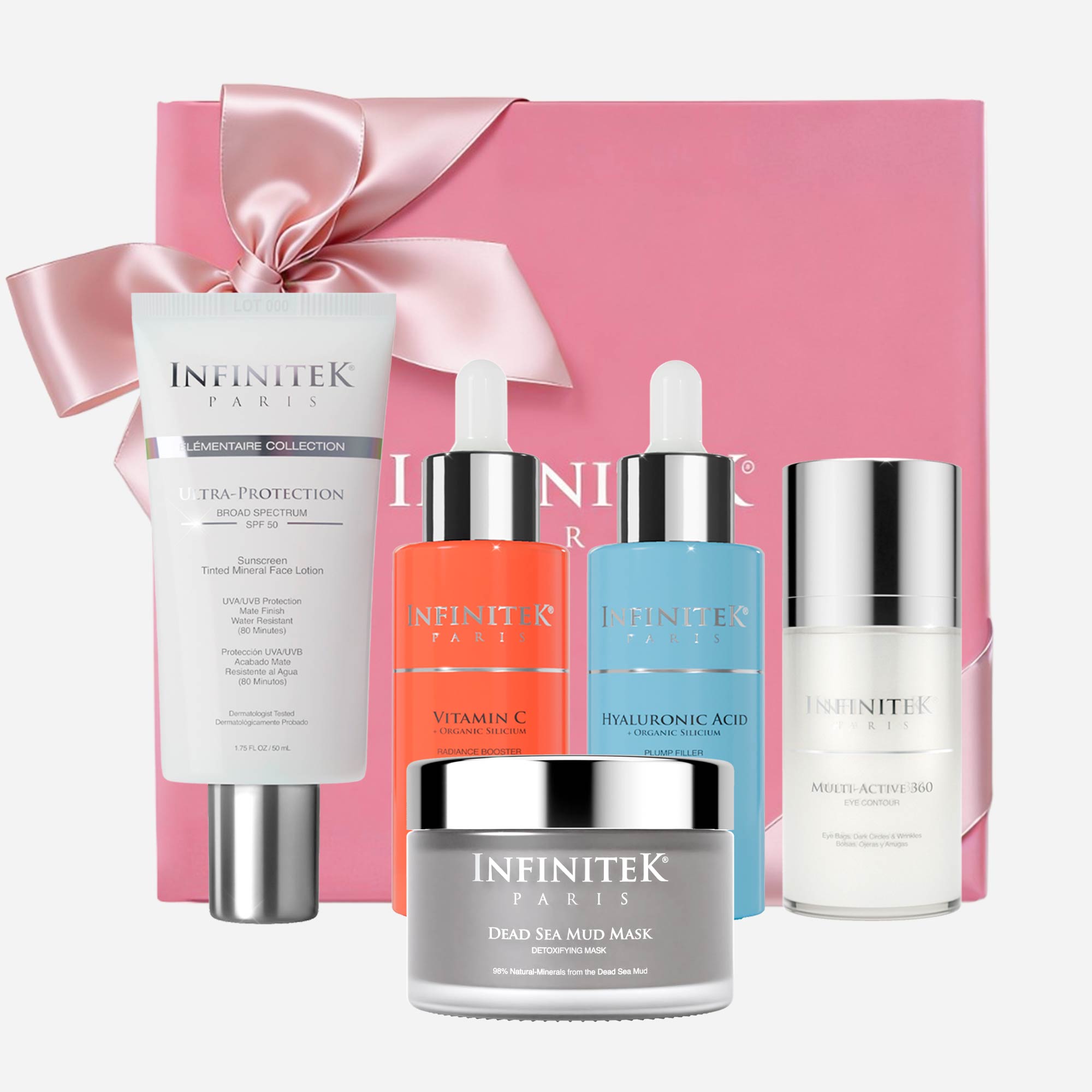 Nuestro Kit Ritual 21 Días está diseñado para ayudarte a crear un hábito de cuidado personal y transformar tu rutina en un ritual de bienestar. Contiene 5 productos esenciales para renovar, exfoliar, hidratar y proteger tu piel, Su uso continuo demuestra cambios notorios en días o semanas.