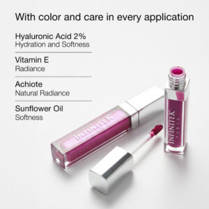 Our INFINIT-GLAM SEDUCTIVE is a creamy blush for lips, cheeks, and eyes. Its exclusive multifunctional formula allows giving a radiant and youthful tone to the lips, cheeks, and eyelids. It has a soft and light texture with a luminous and radiant finish. It can be mixed with other colors to achieve the desired shade. It contains 2% Hyaluronic Acid, natural pigments, and Bixa Orellana extract, which help maintain the natural beauty of the skin, revealing it firm, hydrated, and young. Buildable color intensity.