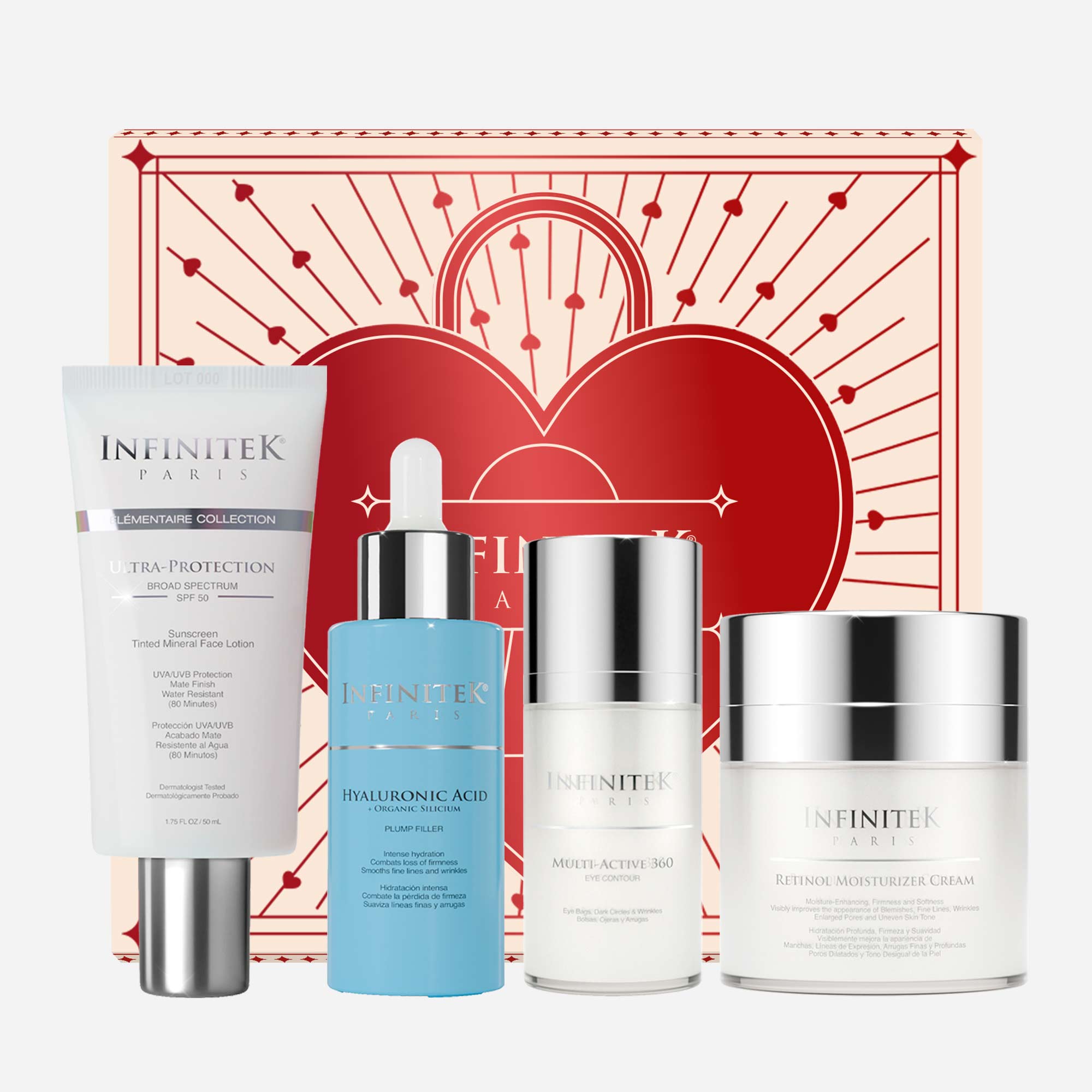 Routine designed to correct imperfections and reduce the appearance of fine lines and wrinkles. The Anti-Wrinkle Kit helps restore moisture and nutrients to the skin. It prevents collagen loss for a more youthful appearance. Visibly improves thickness and texture, for denser, more resilient, and more supple skin, while improving the loss of firmness and superficial signs of aging.