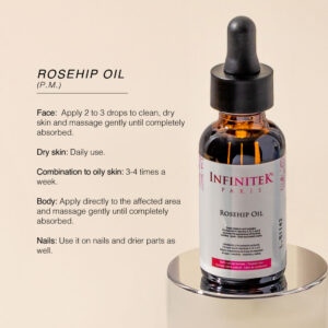 Our Rosehip Oil is a 100% natural formula packed with Vitamins A, B, C, and E. It’s perfect for deeply hydrating and rejuvenating your skin, leaving it soft, firm, and glowing.