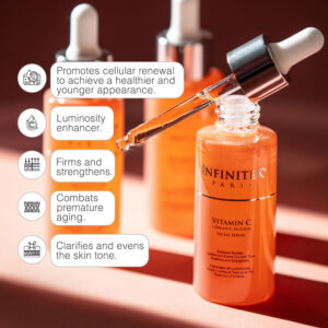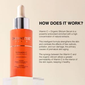 Vitamin C + Organic Silicium Serum is a powerful antioxidant enriched with a high concentration of natural extracts. It enhances facial luminosity, reduces expression lines and wrinkles, combat premature aging, and firms and strengthens the skin. Noticeable results can be seen within days or weeks!