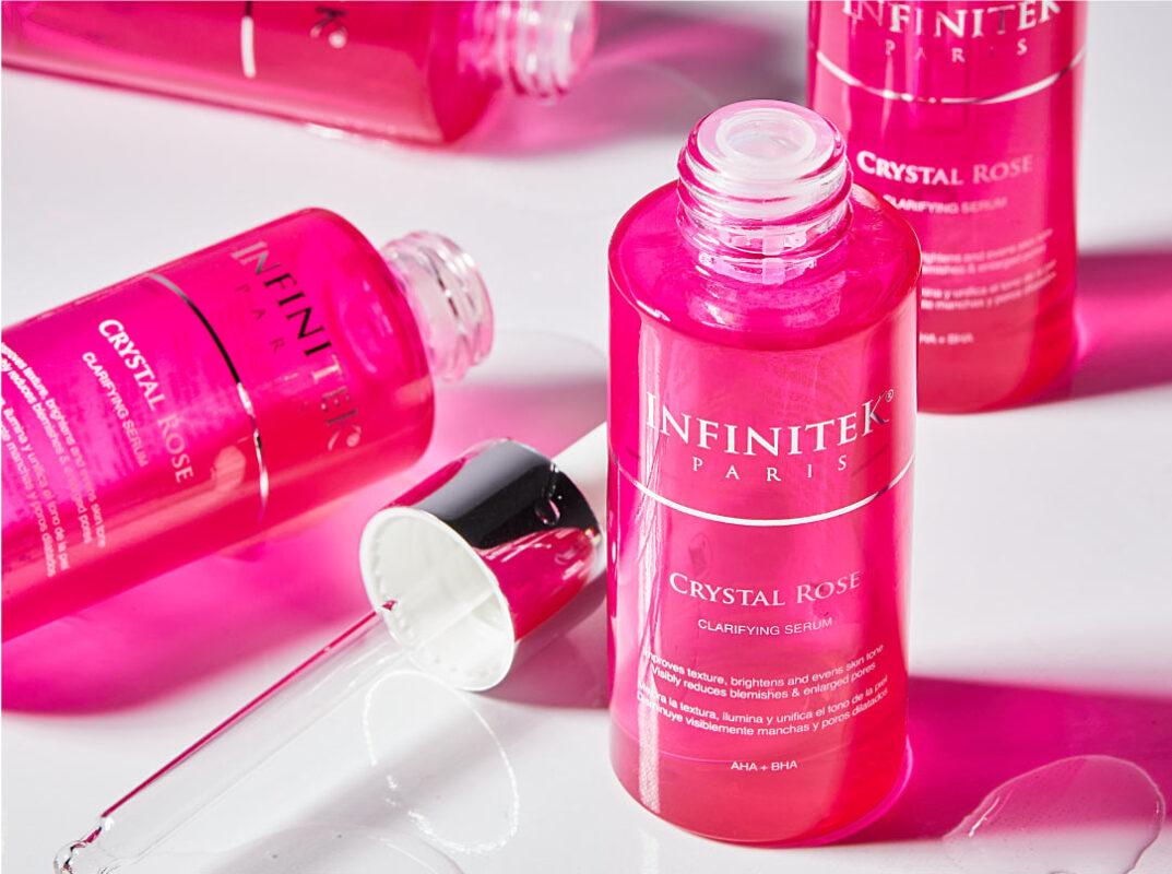 Una de las propiedades más destacadas del BHA es su capacidad para exfoliar suavemente la piel. Los hidroxiácidos son moléculas ácidas que disuelven las células muertas de la piel y promueven la renovación celular, revelando una piel más suave, luminosa y uniforme. Como por ejemplo el Sérum Clarificante Crystal Rose Con AHA+BHA de Infinitek París que contiene una innovadora fórmula despigmentante y exfoliante, ideal para combatir manchas, marcas de acné, mejorar la textura y signos de envejecimiento. Formulado con una mezcla de ácido Glicólico (10% AHA), ácido salicílico (2% BHA) y ácido azelaico, los cuales eliminan células muertas, destapan los poros, suavizan las líneas finas y arrugas; mientras la miel de rosas y el ácido hialurónico, hidratan, nutren y calman.