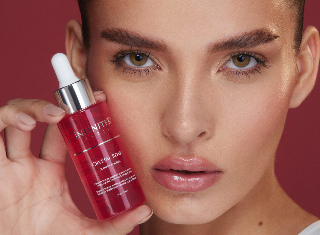 Existen ingredientes efectivos para combatir el acné y las manchas, como el ácido salicílico o BHA que ayuda a exfoliar suavemente y desbloquear poros, el Sérum Clarificante Crystal Rose Con AHA+BHA de Infinitek París es una innovadora fórmula despigmentante y exfoliante, ideal para combatir manchas, marcas de acné, mejorar la textura y signos de envejecimiento.